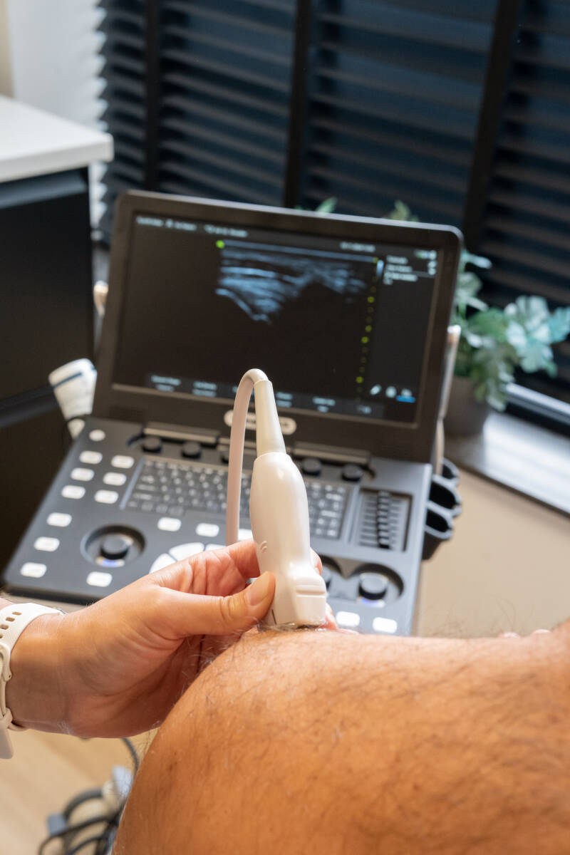 Echografisch onderzoek is snel, gemakkelijk en pijnloos. Bovendien is de techniek ongevaarlijk en kan het onderzoek zo vaak als nodig is herhaald worden. Wanneer de fysiotherapeut zijn vermoedens wil bevestigen, kan hij een echo maken. Het voordeel is ook dat het dynamisch kan worden uitgevoerd, dus tijdens de (pijnlijke) beweging. De echo maakt hij/zij op basis van een eerder gedaan intakegesprek en lichamelijk onderzoek. Hiermee stelt hij/zij de diagnose en maakt op basis daarvan uw persoonlijk behandelplan. Indien nodig wordt u doorverwezen naar uw huisarts of specialist.